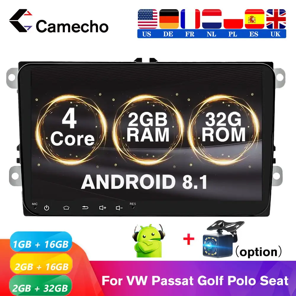 Автомагнитола Camecho, 2 Din, Android 8,1, GPS, мультимедийный плеер, Авторадио для VolkswagenVW PassatPOLOGOLFSkodaSeatLeon, радио