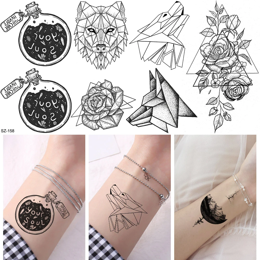 Временные тату-наклейки Ваша душа, женские художественные геометрические наклейки на руку, волк, тело, лодыжку, черный единорог, искусственная 3D татуировка