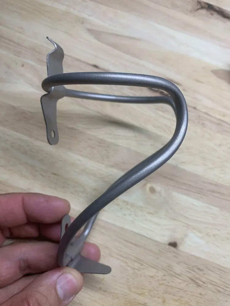 Хороший титановый продукт довольно легкий, надеясь, что он прочнее, чем первый! Крепится на гравия, сварка опускается в конце нескольких выходов.