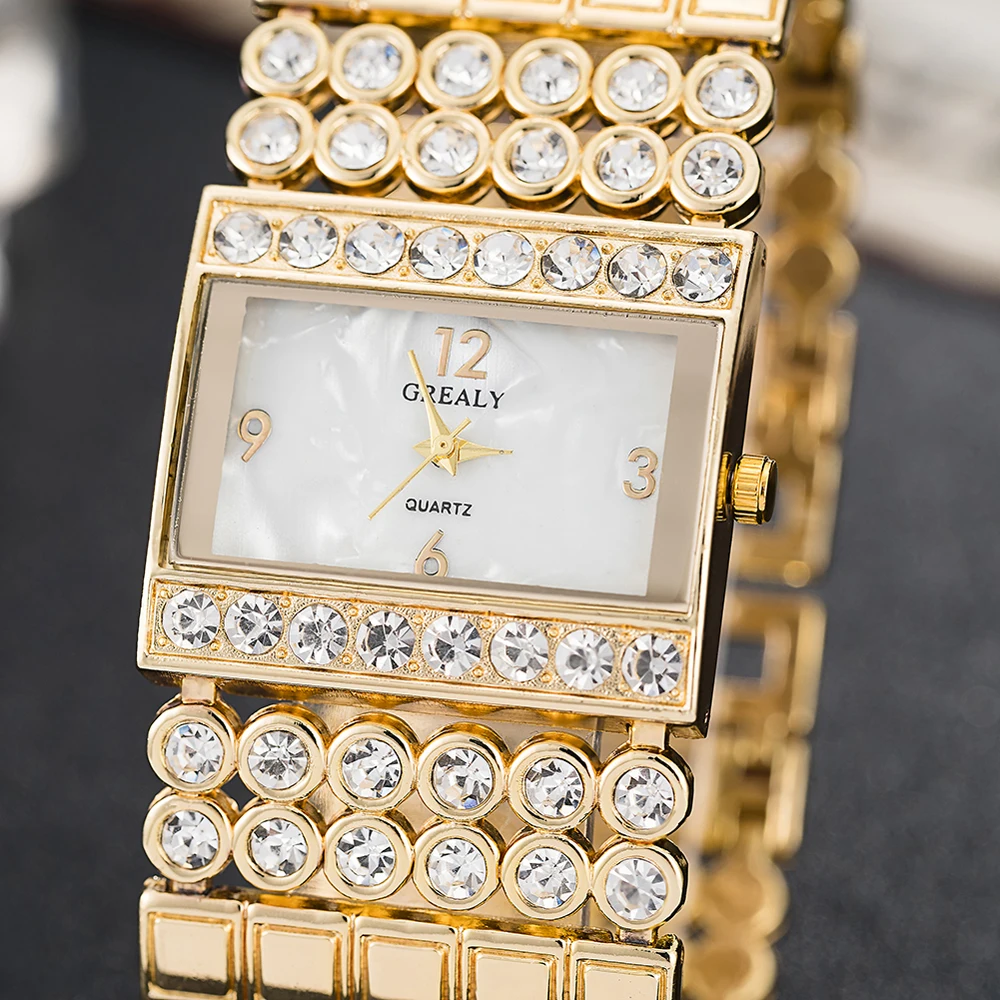 3 шт., высококачественные часы, браслет из нержавеющей стали, модные женские Стразы, квадратный чехол, часы, подарочный набор часов, браслет