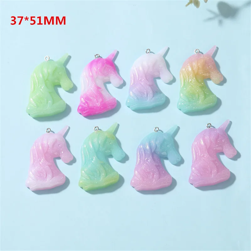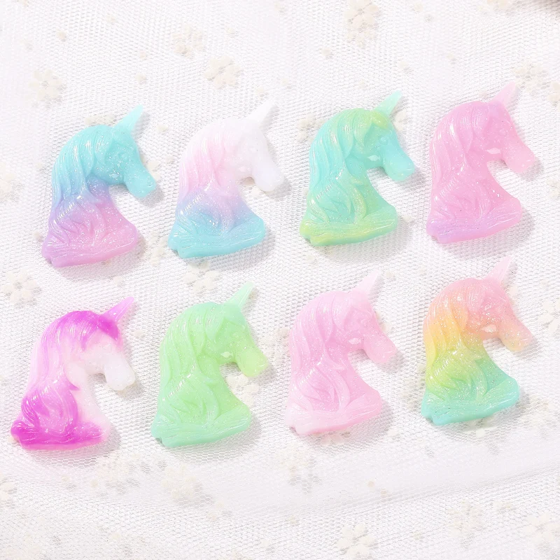 37*51 мм 10 шт. Подвески в виде радужного единорога градиентные цвета Кабошоны с плоским основанием из смолы для аксессуаров для головных уборов и украшений для телефона.