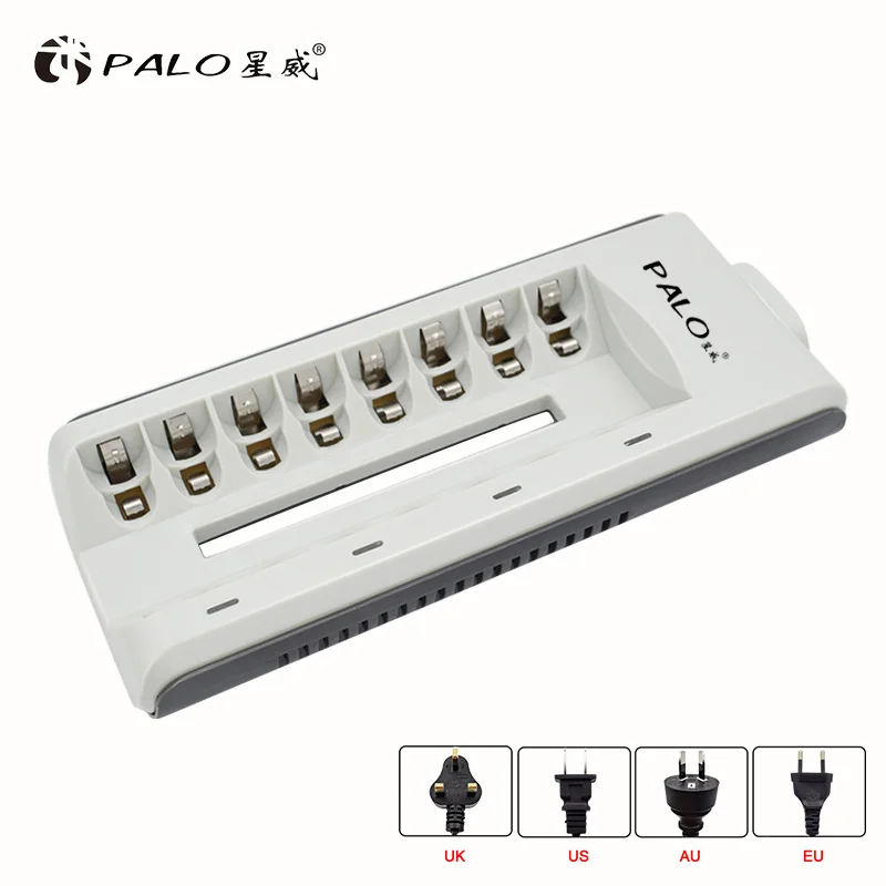Умное зарядное устройство PALO с 8 слотами и индикатором светильник для аккумуляторов 1,2 в AA AAA Ni-MH Ni-Cd