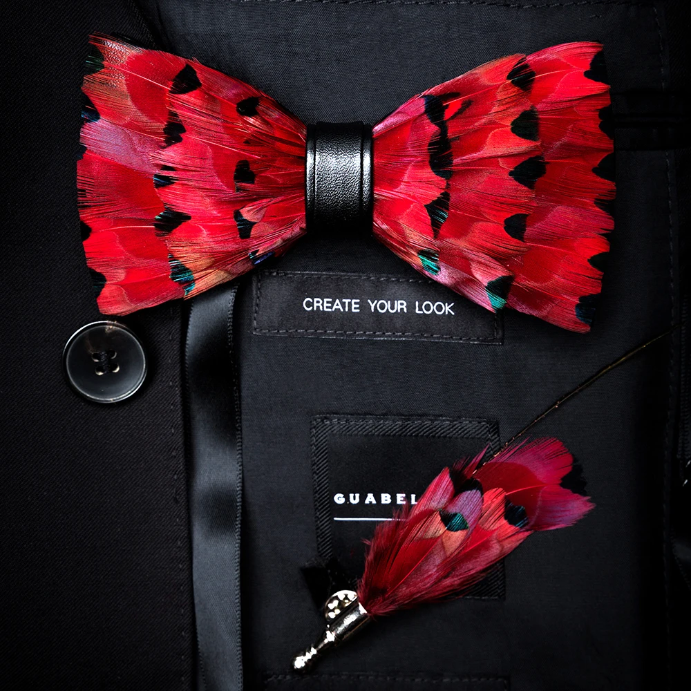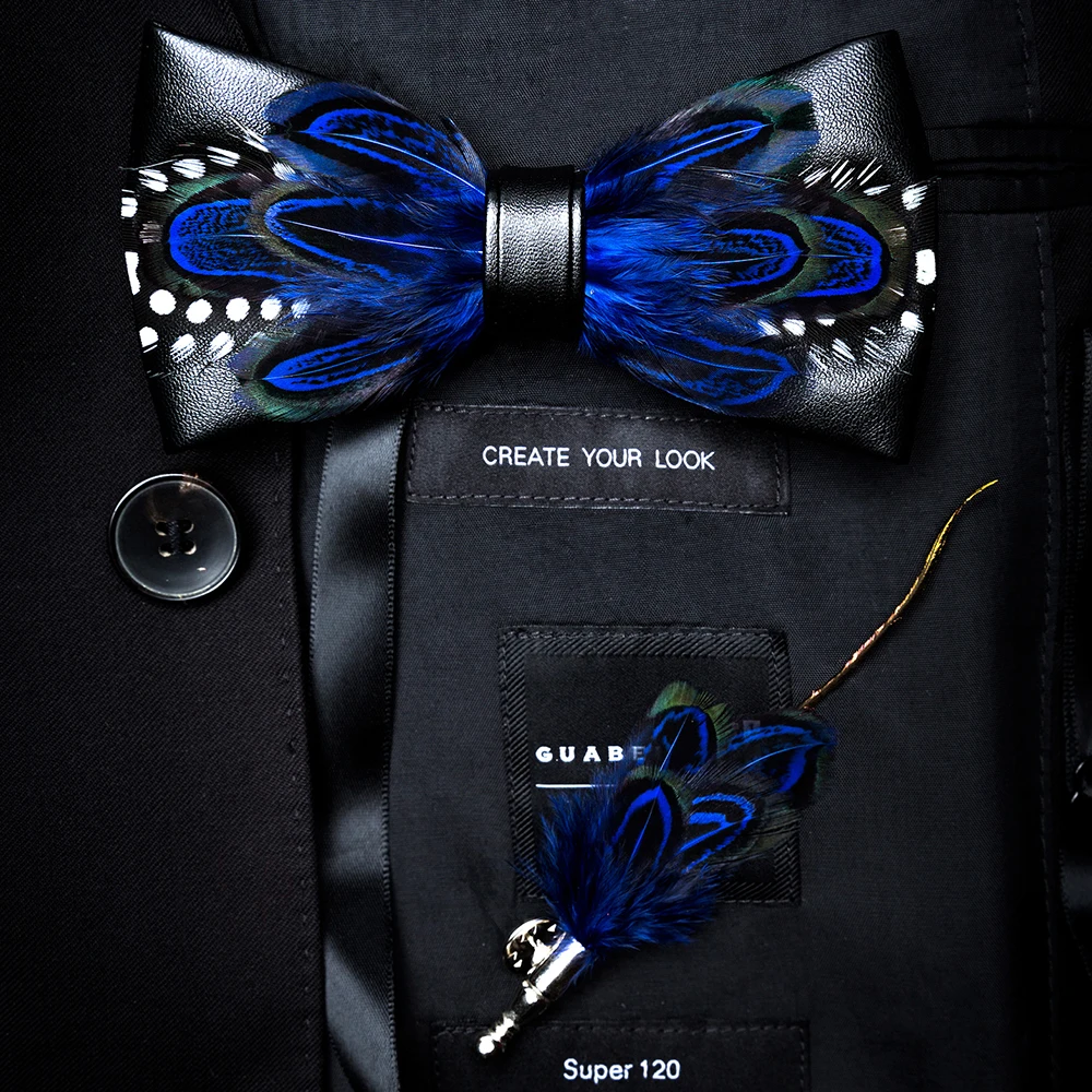 Мужской перьевой галстук-бабочка и брошь RBOCOTT, набор аксессуаров ручной работы, мужской роскошный нагрудный галстук-бабочка в коробке, свадебный подарок