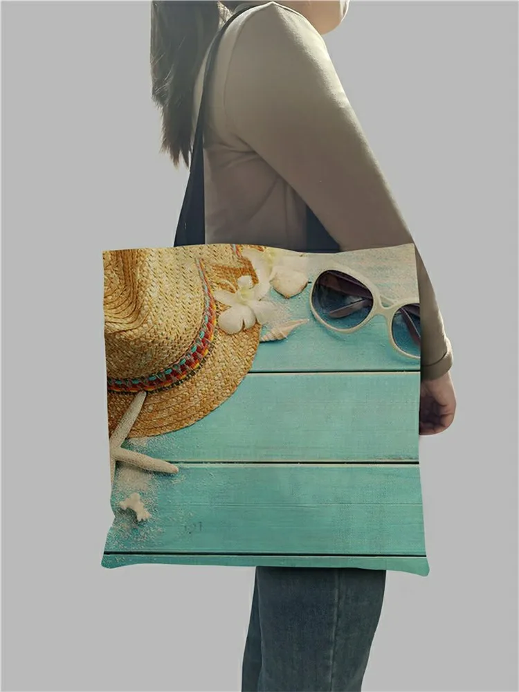 Женская льняная Сумка-тоут с принтом, Модный повседневный пляжный т...