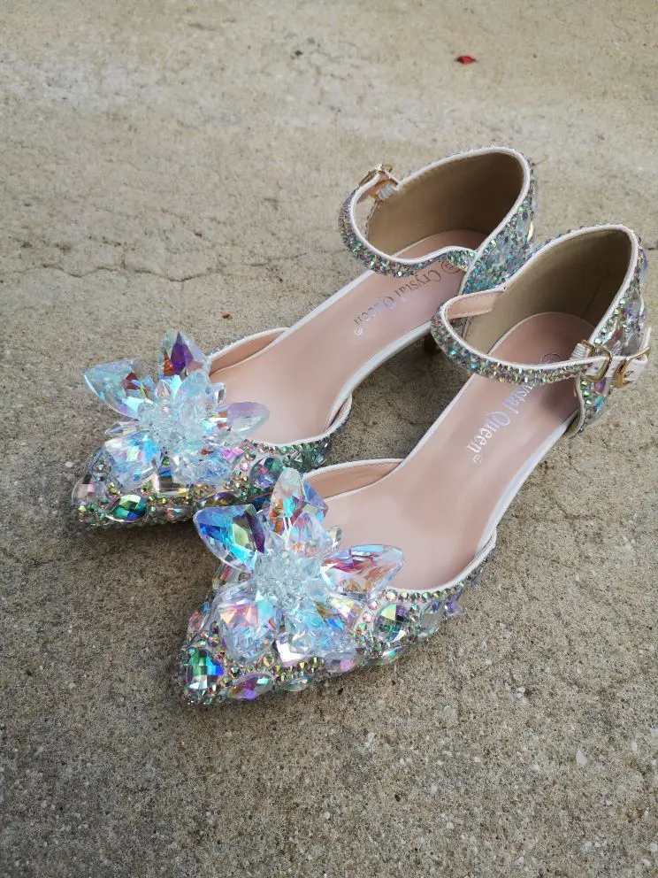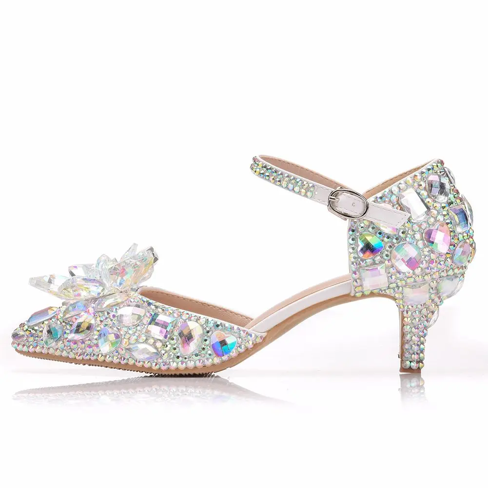 Свадебные туфли с острым носком для невесты; Туфли-лодочки Золушки с ремешком на щиколотке; Стразы Мэри Джейн на высоком каблуке 5 см