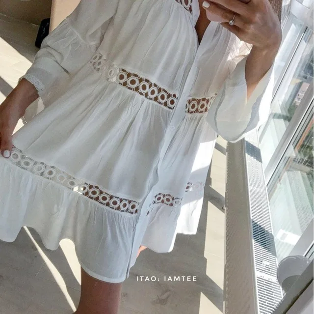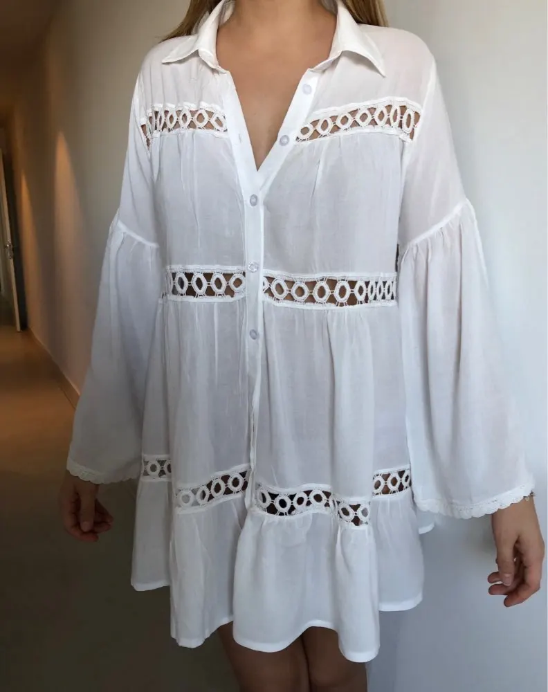 Сексуальное открытое платье с отложным воротником на пуговицах спереди открытая мини платье трапециевидной формы для женщин Летняя туника пляжная одежда, пляжный костюм, накидка, N429