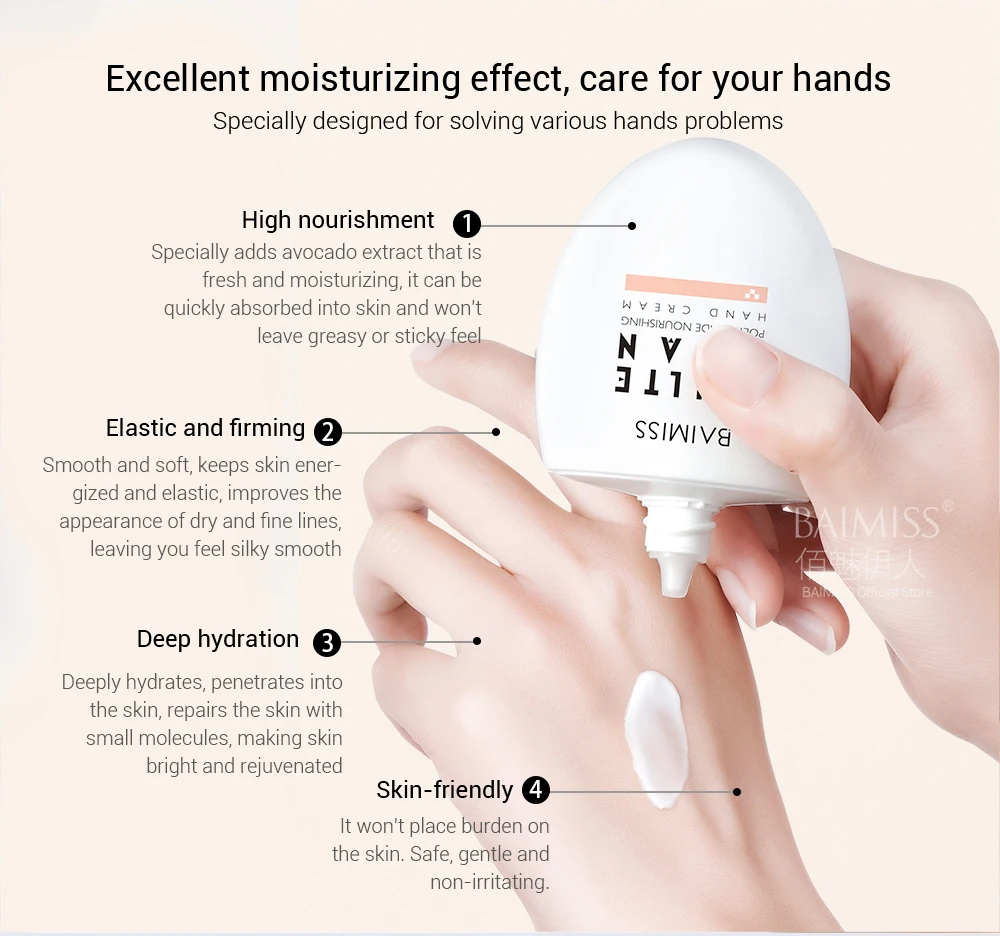 Увлажняющий крем для рук BAIMISS Peptide, экстракт авокадо, питательный Антивозрастной уход за кожей рук, восстанавливающий гидрат
