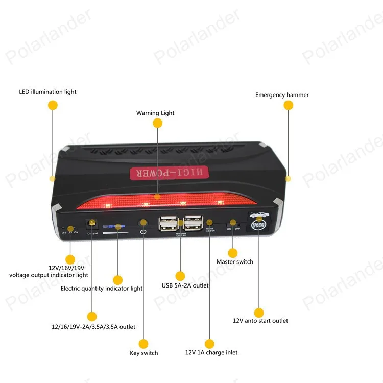 1. Зарядка для мобильных телефонов и ноутбуков, пусковых машин, регулируемый светодиодный фонарь (фонарь, стробоскопы и SOS огни).