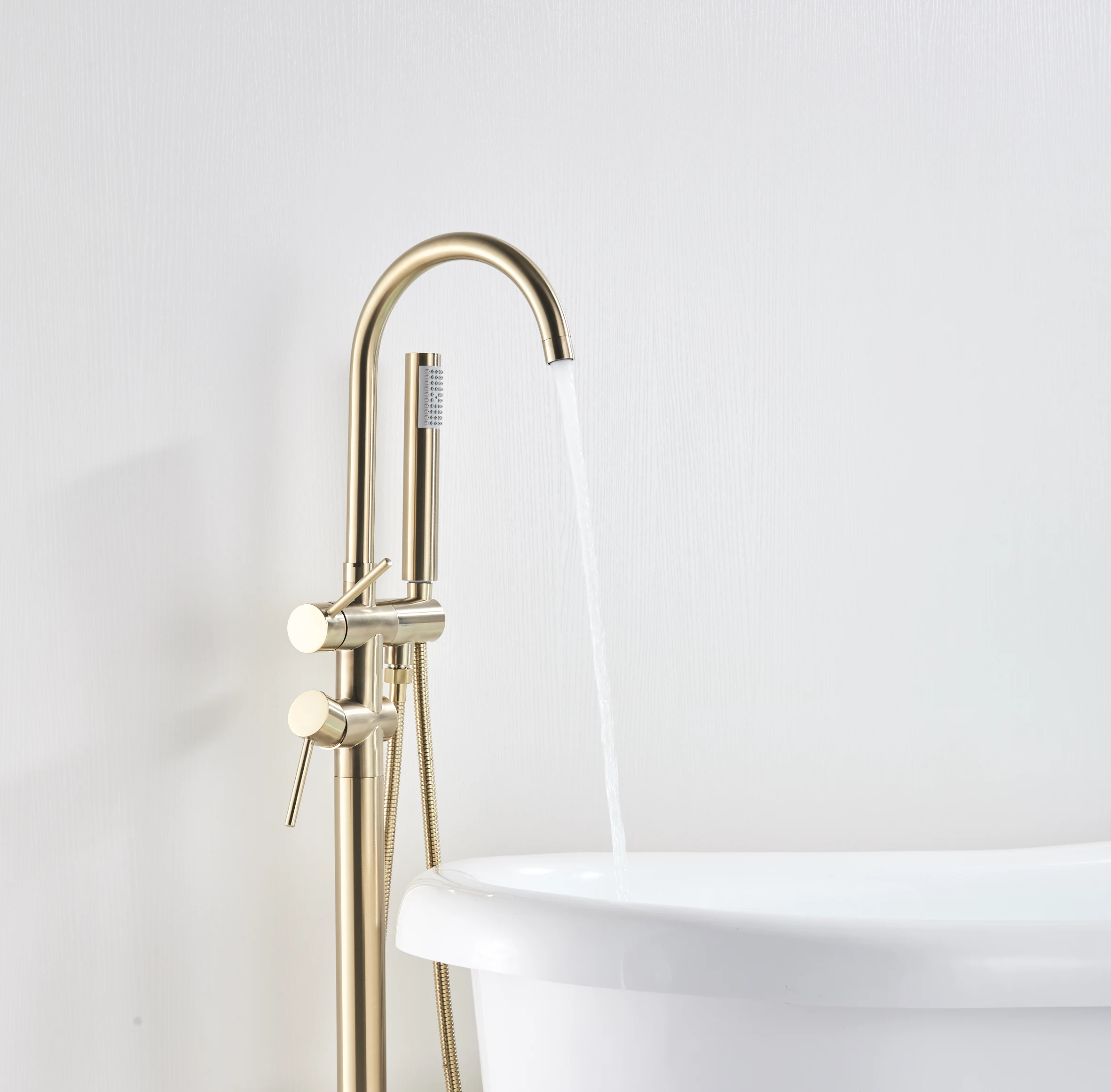 Смеситель для ванны, простой дизайн, ЗолотойКруглый Пол, для горячего и холодного душа, несколько-функциональный смеситель, смеситель для ванной комнаты с ручным душем