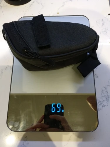 Быстро пришла сумка. Велосипед разобран на зиму, проверить не могу, но качество вполне себе. Размер не очень большой, для примерного сравнения Honor 20 PRO по диагонали залез и застегнулся. Хватит положить камеру и шестигранники.