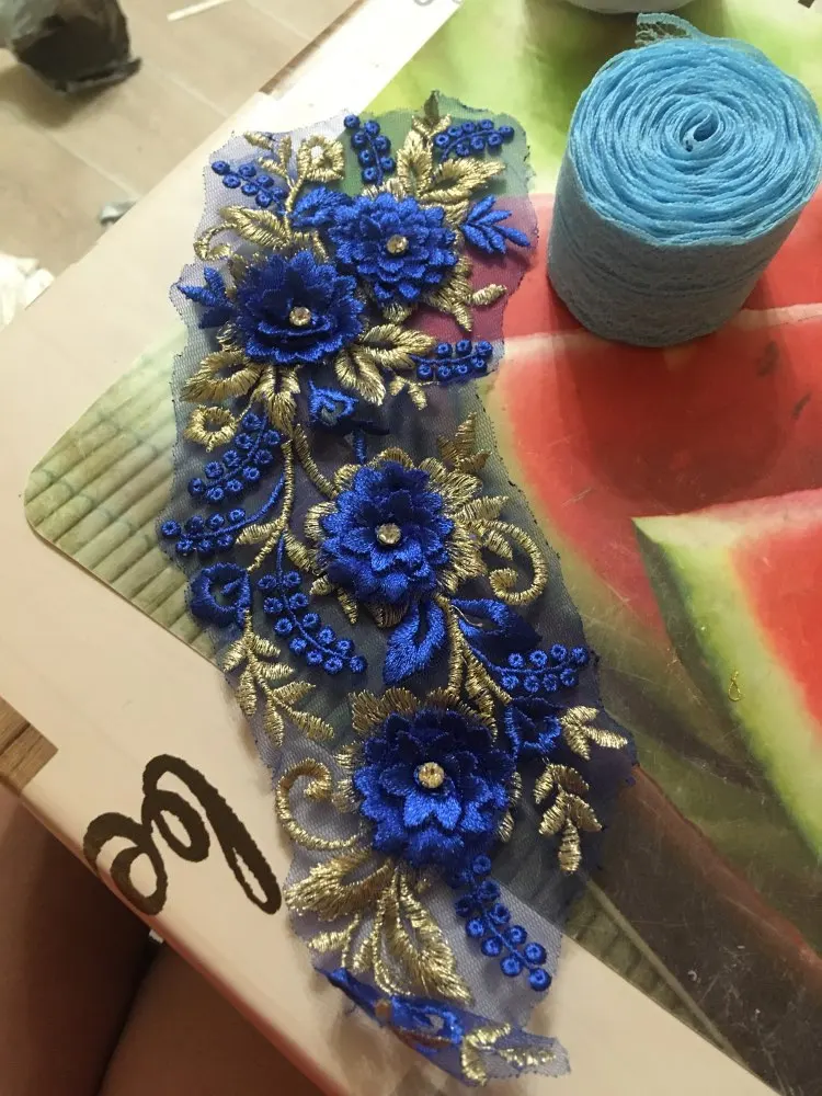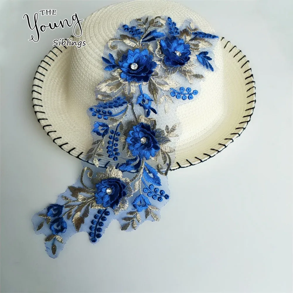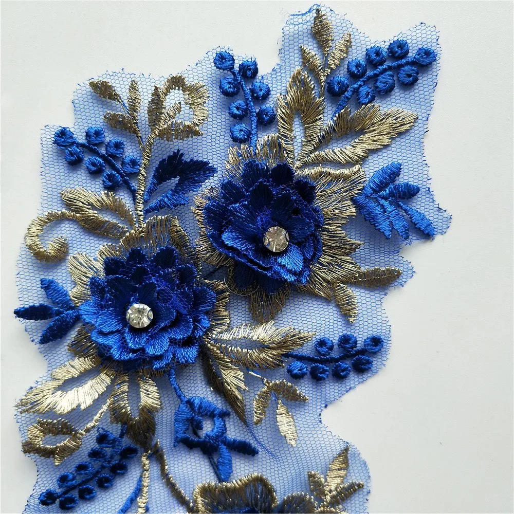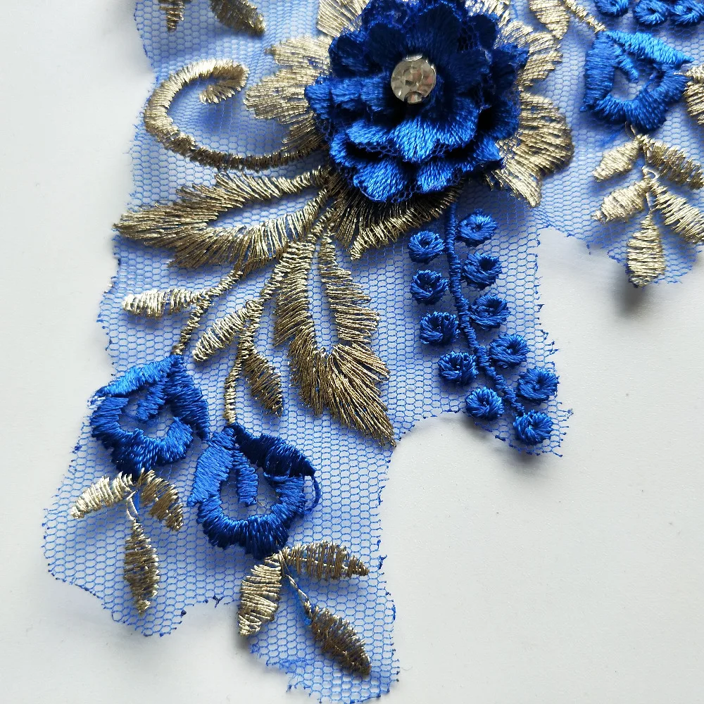 Синий 3D кружевной цветок аксессуары для шитья DIY материал для изготовления свадебного платья Дизайн одежды Декор кружевной воротник декольте аппликации