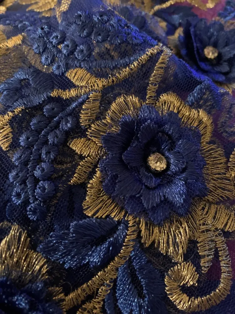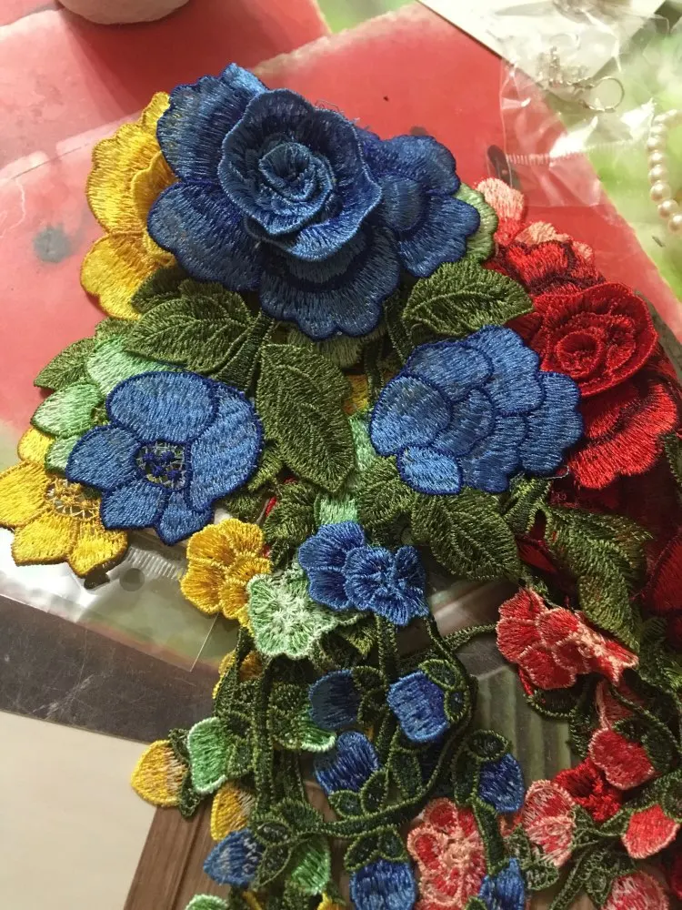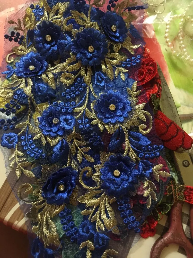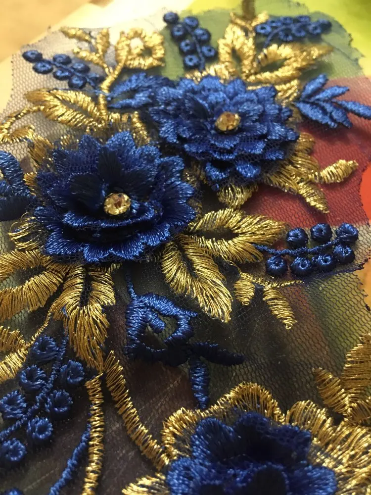 Синий 3D кружевной цветок аксессуары для шитья DIY материал для изготовления свадебного платья Дизайн одежды Декор кружевной воротник декольте аппликации