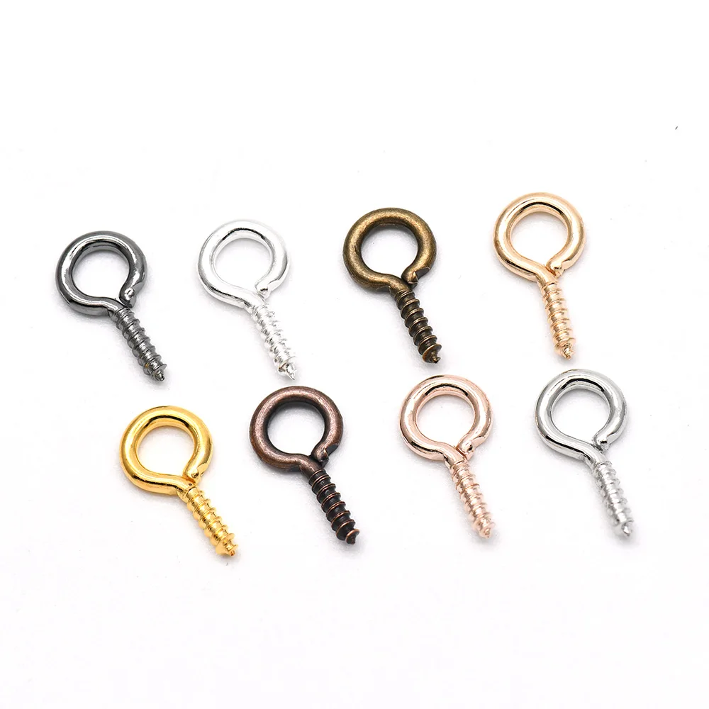 100 шт.лот маленькие винтовые крючки с застежкой, штифт для подвесок, Серебряные Крючки с ушками, подходят для бусин с отверстиями, изготовление ювелирных изделий своими руками HK001