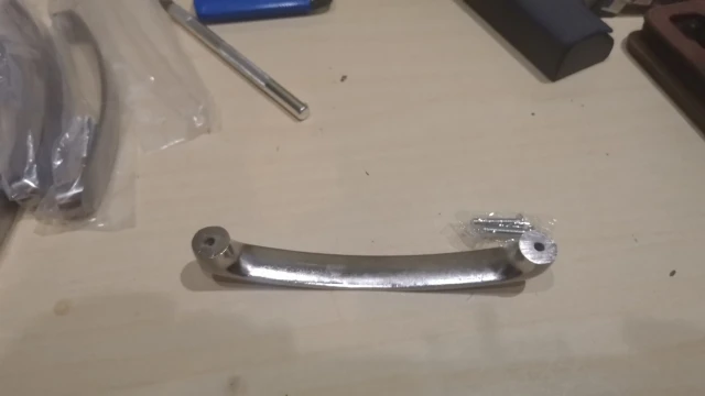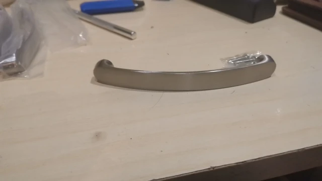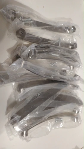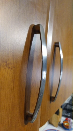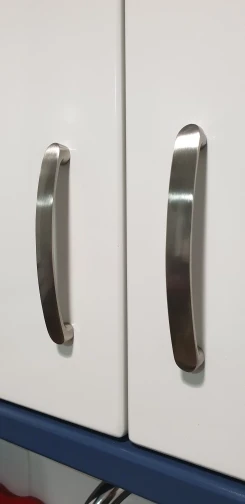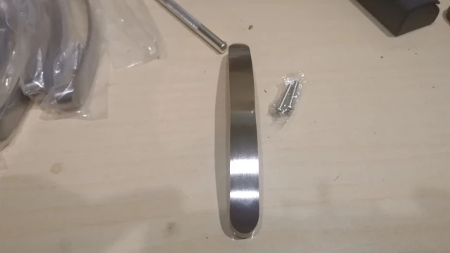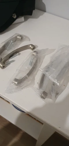 Ручки дошли быстро. Размер соответствует. Один минус есть, то-ли болты длинноваты, то ли резьба в ручках не полная, в общем болты не до конца закручиваются пришлось немного подтачивать пару миллиметров. Но если у вас дверцы толстые на мебели(более 16мм) то все должно подойти.