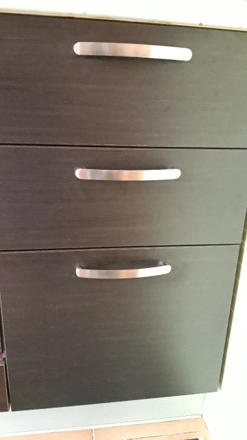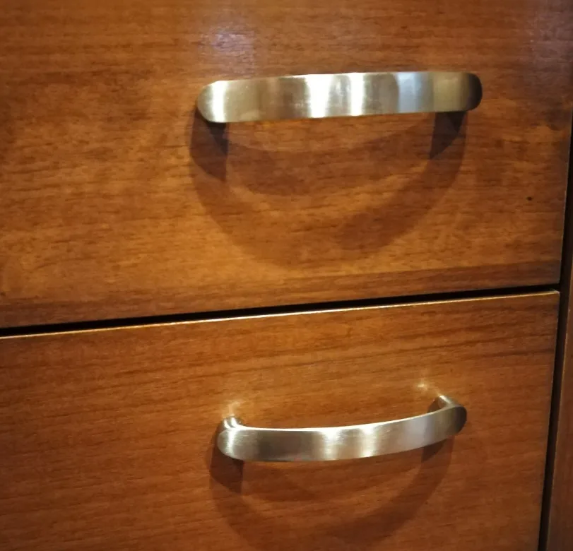 los tiradores están bien, la terminación es un poco basta, y el material metálico es ultraligero, apenas pesa, la medida de los tornillos ok, un 6/10.