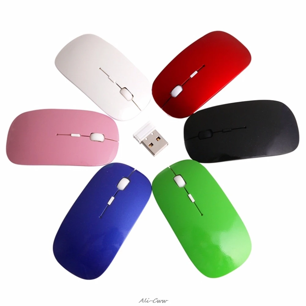 Многоцветный 2,4 ГГц Беспроводной ультра тонкий оптический прокрутки МышьМышей 1600 Точек на дюйм + USB приемник для ПК, ноутбука, настольного компьютера, оптовая продажа
