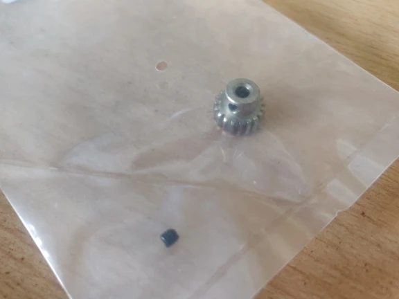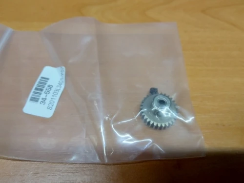 Отличная шестерня, Если туго лезет на вал аккуратно подточите круглым надфилем облой на внутренней стороне, там где отверстие поджимного винта. Приехало довольно быстро.