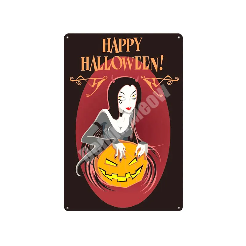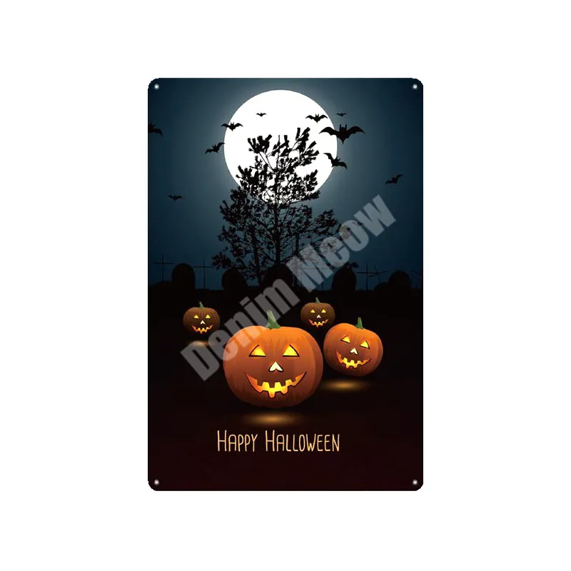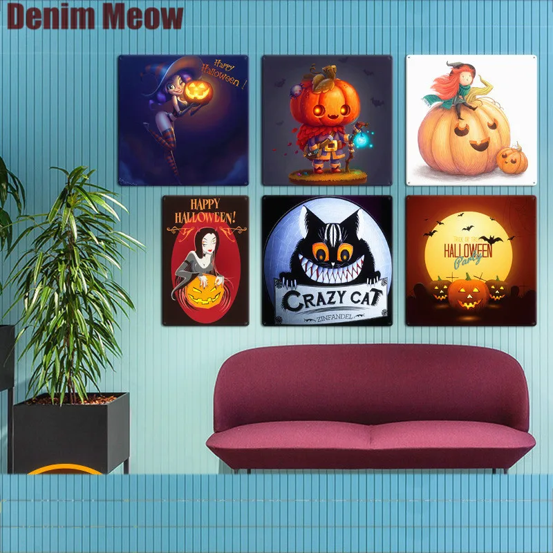 Счастливый Хэллоуин Ретро налет Тыква металлические оловянные вывески домашний бар Пивной магазин вечерние декоративные тарелки Crazy Cat Farm настенные наклейки N234