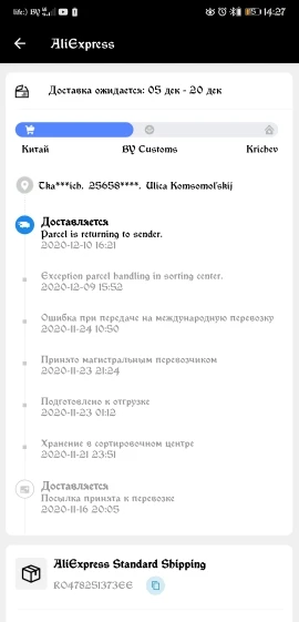 Страна: RU Доставка: Standard Shipping 27.12.2020
