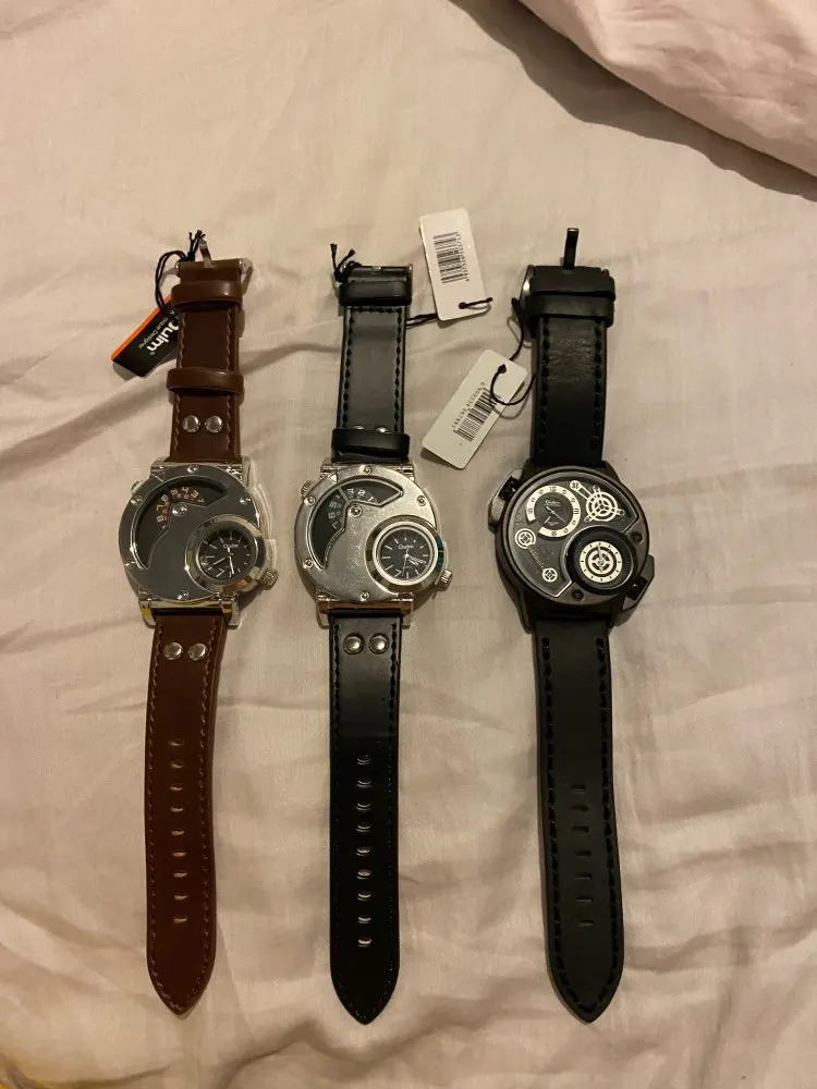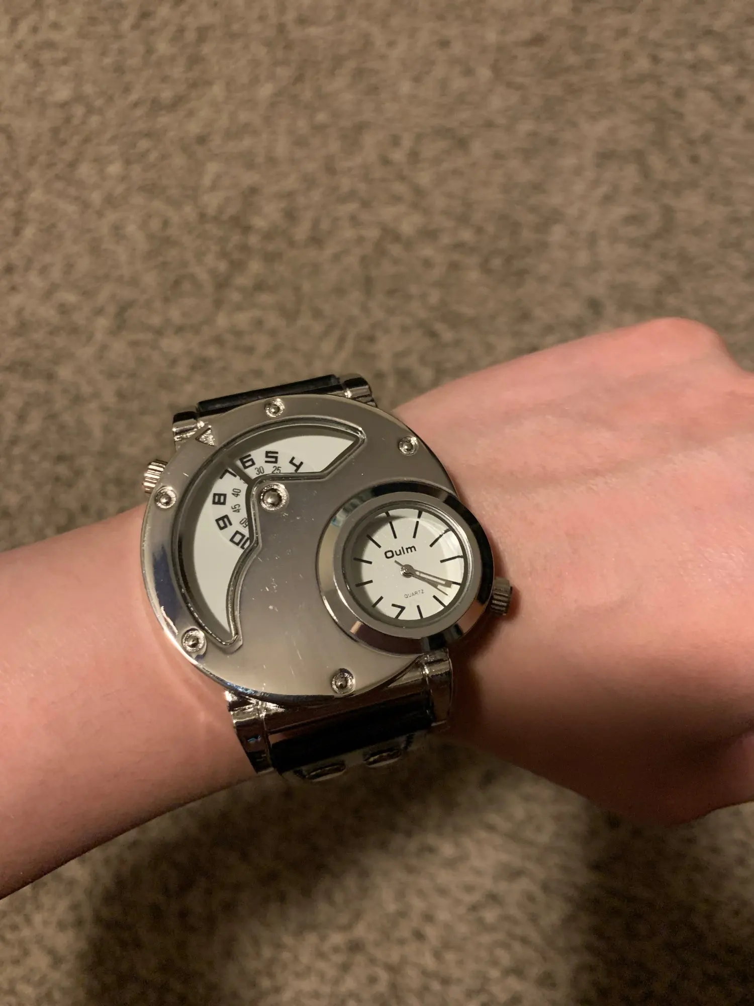 Часы такие, как ожидалось, действительно хорошего качества. Кожаный ремешок изготовлен из натуральной кожи и хорошо сочетается с цветовой гаммой. Я был бы очень благодарен, если бы было небольшое руководство по эксплуатации с часами, инструктирующее нас о том, для чего нужны обе функции циферблата. В целом стоит своих денег!