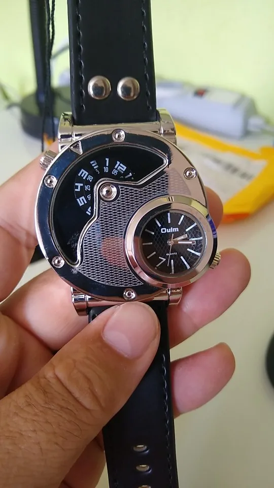 Часы Oulm с уникальным дизайном, мужские наручные часы с несколькими часовыми поясами и кожаным ремешком, Кварта, модные мужские часы Oulm 9591, мужские часы