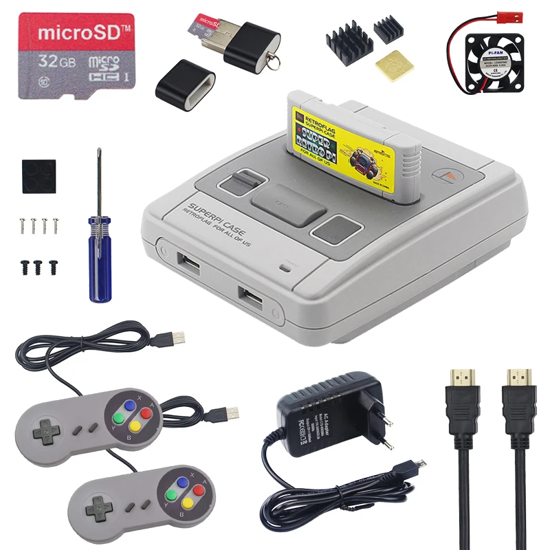 Это новая версия Retrflag SUPERPi CASE-J, которая имеет меньший размер и более гуманизированный дизайн, приносит больше отличного опыта для любителей DIY или игр. Мы также делаем набор, включающий геймпады, sd-карты, адаптер питания, вентилятор охлаждения, радиаторы и HDMI кабель для вас на выбор.