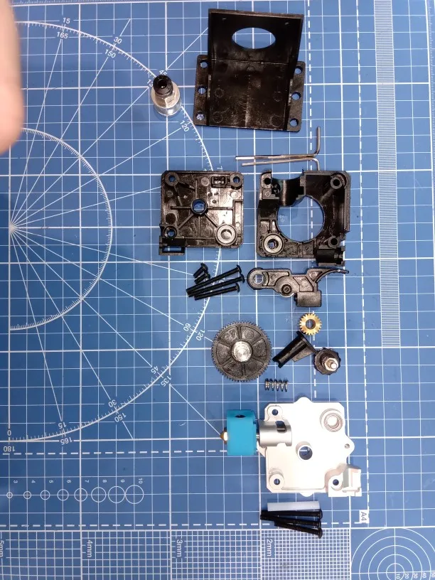 Пластиковая часть ужасного качества. Не совпали 2 отверстия крепления шаговика и расстояние между осями шестерни и движка слишком маленькое (после сборкиклинит шестерню) пришлось допиливать напильником.