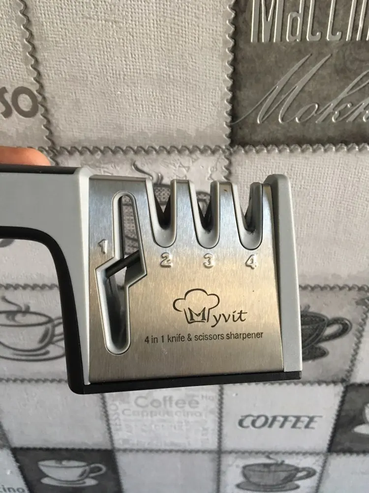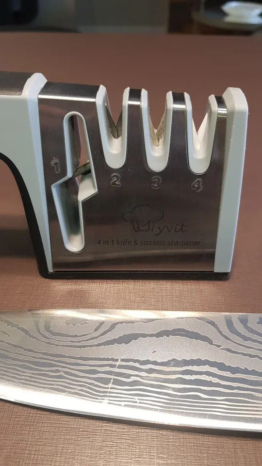 Хорошая точилка. Убитые в ноль ножи за пару минут можно довести до вменяемого реза. Хотя по уму конечно надо бруски и тд. Но иногда проще так чем слушать как жена зудит про тупые ножи))))