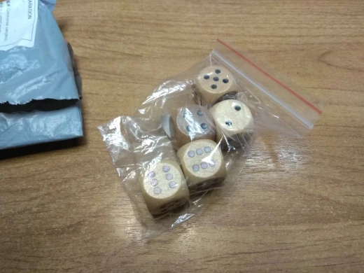 Хорошие деревянные кости, хорошо обработаны, гладкие, покраска равномерная. Пришли 4 шутки красные и 1 белая
