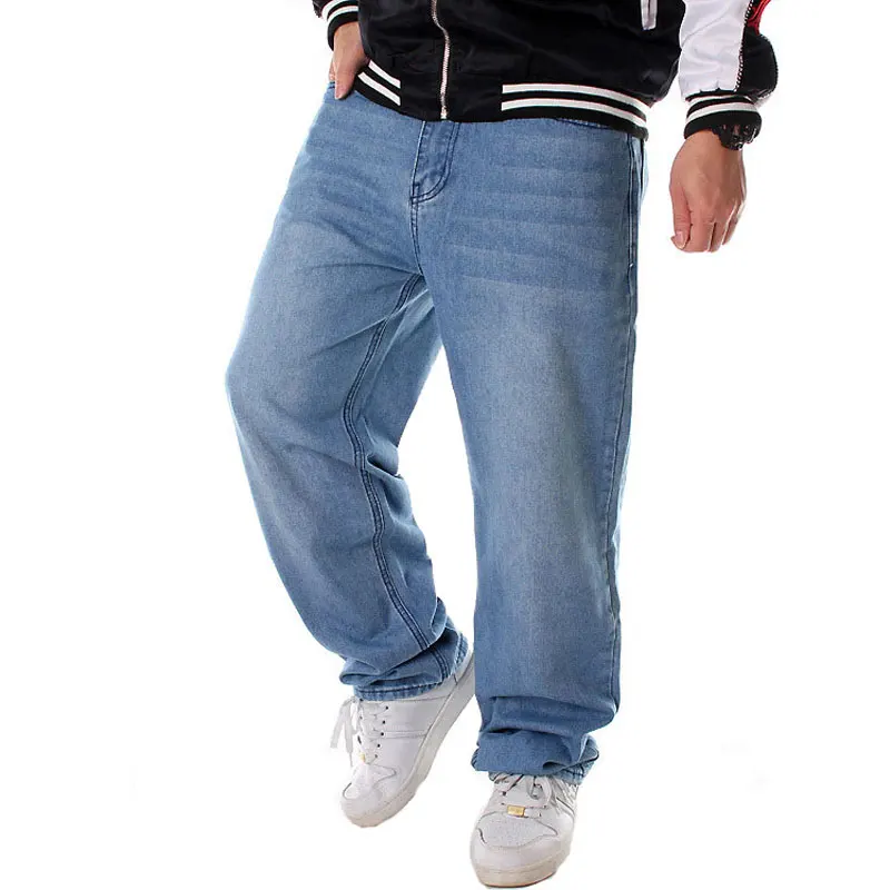 Джинсы для мужчин, светло-голубые джинсы большого размера, мужские свободные повседневные трендовые брюки в стиле хип-хоп, штаны для скейтборда