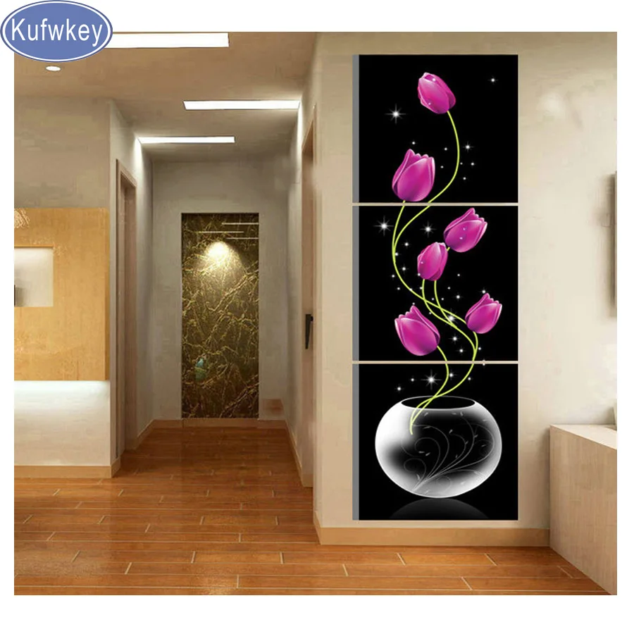 3 шт.компл. 5D алмазная вышивка, Фиолетовый Тюльпан, сделай сам, алмазная живопись, вышивка крестиком, полная квадратная стразы, мозаика, рисование цветочным рисунком