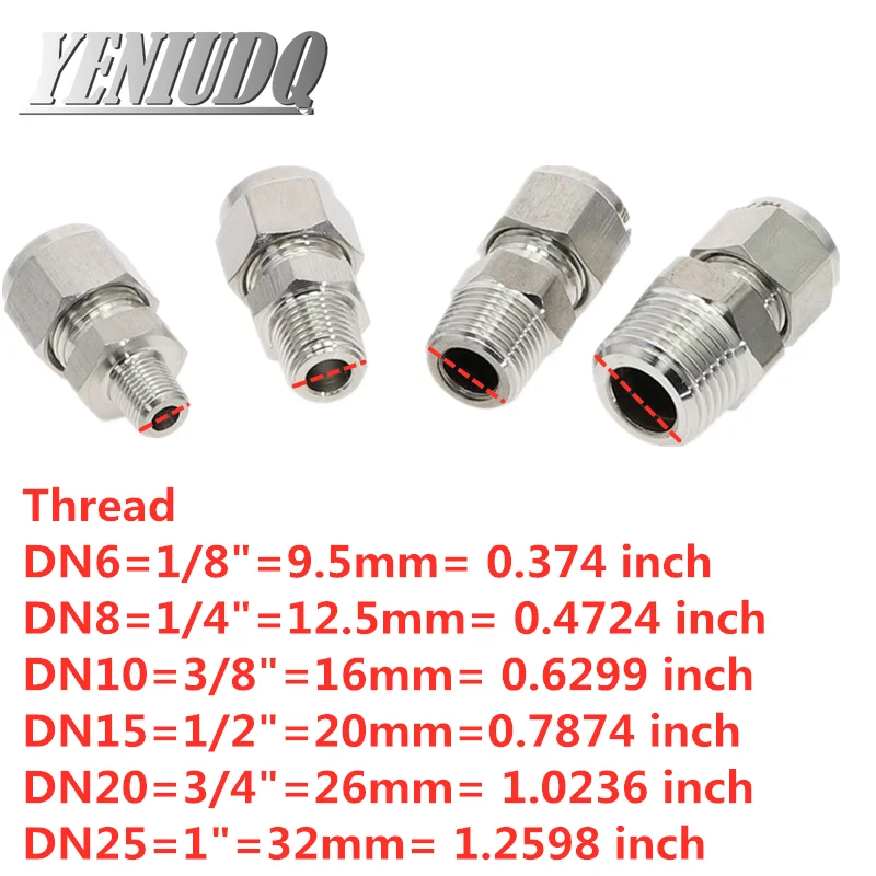 Соединитель компрессионный из нержавеющей стали SS 304 с двойным наконечником 6 мм, 8 мм, 10 мм, 12 мм, трубка до 18 дюйма, 14 дюйма, 38 дюйма, 12 дюйма, фитинг для труб с наружной резьбой NPT