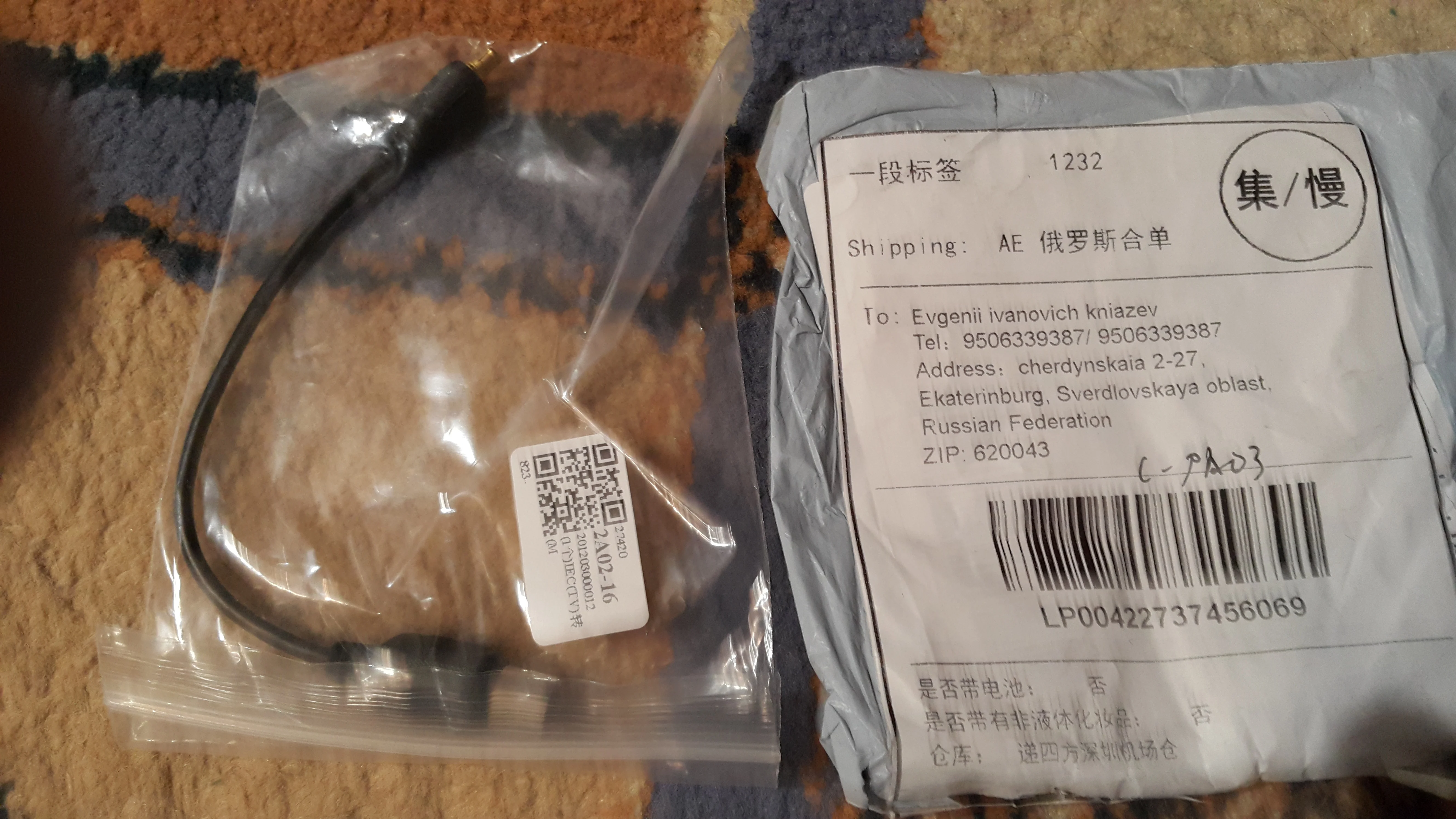 Страна: RU Доставка: Cainiao Super Economy 26.01.2021