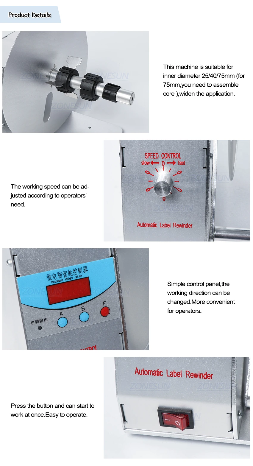 Автоматическое устройство перемотки этикетки ZONESUN для одежды, этикетка для стирки, штрих-код, ценник, самоклеящийся этикетка, регулируемая скорость