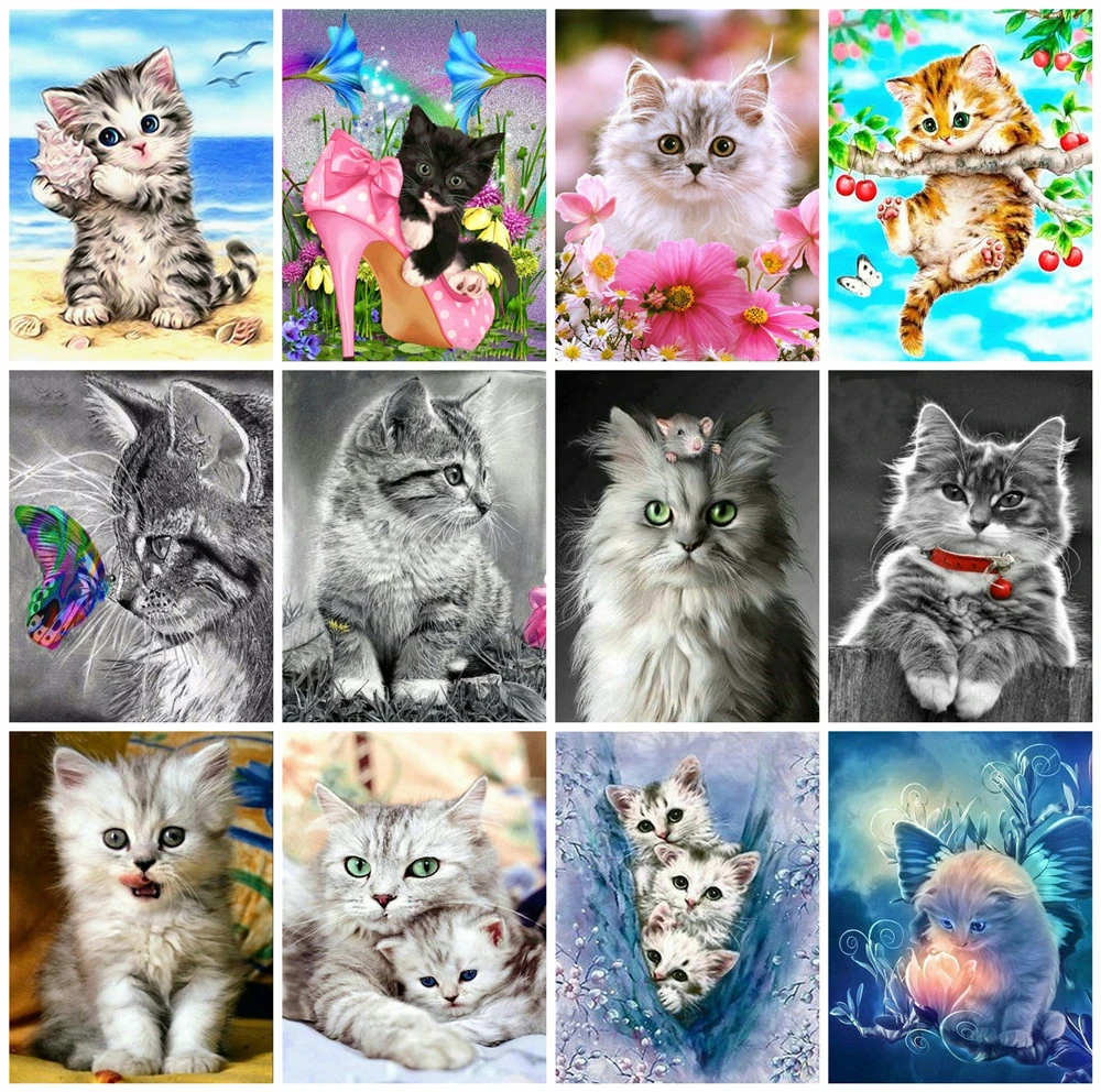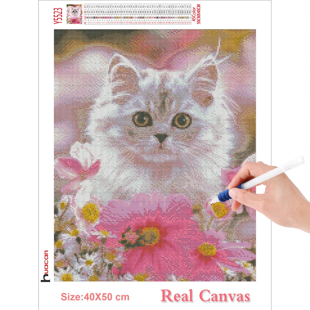 Алмазная живопись 5D Huacan, квадратные картины с изображением кота, стразы, животные, алмазная вышивка, Алмазная мозаика, распродажа, картина из мультфильмов