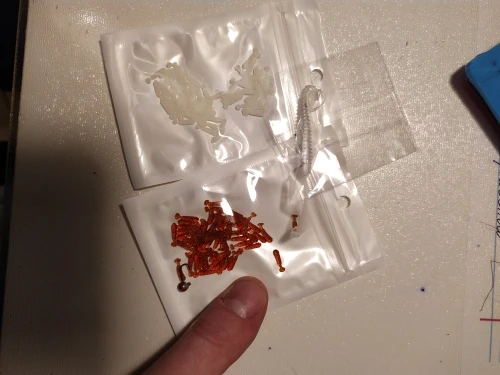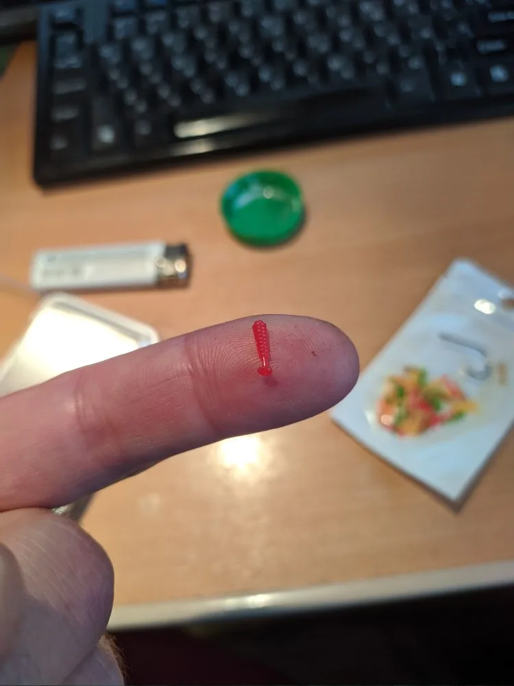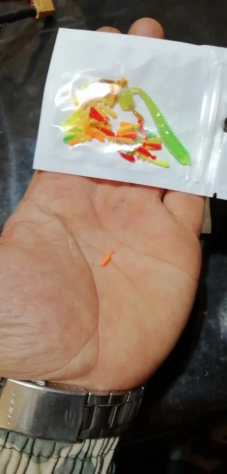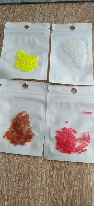 Они реально такие маленькие - всего 10 мм длиной. Можно использовать вместо мотыля на мормышку или для ультра лайт мормоспинига. Планирую летом попробовать на микро дроп шоп оснастке. В подарок продавец положи небольшую силиконовую приманку длиной 50 мм. Спасибо. =)