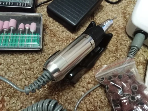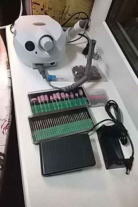 Забрал посылку. Заказывал для девушки. Порадовало то, что доставили с России сдэк-ом. Доставка была примерно 5 дней (точно не помню) и прямо до двери. Фрезы подходят все, даже которые купили отдельно в местных магазинах. Пробовали счищать лак, все хорошо. Регулировка оборотов... Ну как вам сказать, я разбираюсь в электронике и тут идёт регулировка напряжения, а не оборотов. Без сохранения мощности. Т. Е. На малых оборотах легко остановить, на высоких оборотах- сложно. А по-хорошему, должно и на низких оборотах сложно остановить. Так же плюс, то что есть включение от ножной педали.