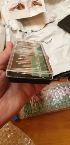 пришло за 9 дней! на почте из-за выходных пролежало 2 дня. всё работает комплект соответствует, единственное на видео показано что держатель для шлифовки свёрл зажимной для насадок а по факту как на фото просто вставляешь, от этого вибрация при вращении за это снял звезду. жена вечером опропбует полностью потом дополню отзыв. на фото всё видно.