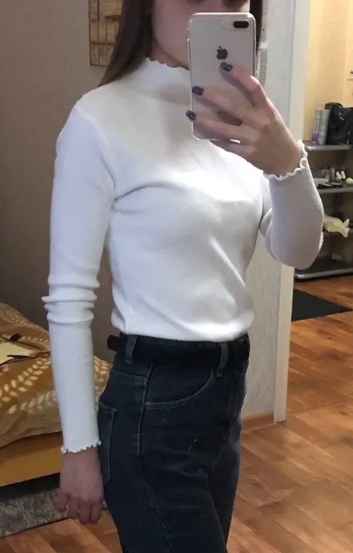 Отличная водолазка! Трикотаж, белая - реально белоснежная, края хорошо обработаны, лишних ниток нет, хорошо тянется, брала на s размер. Я довольна, ещё возьму другого цвета.