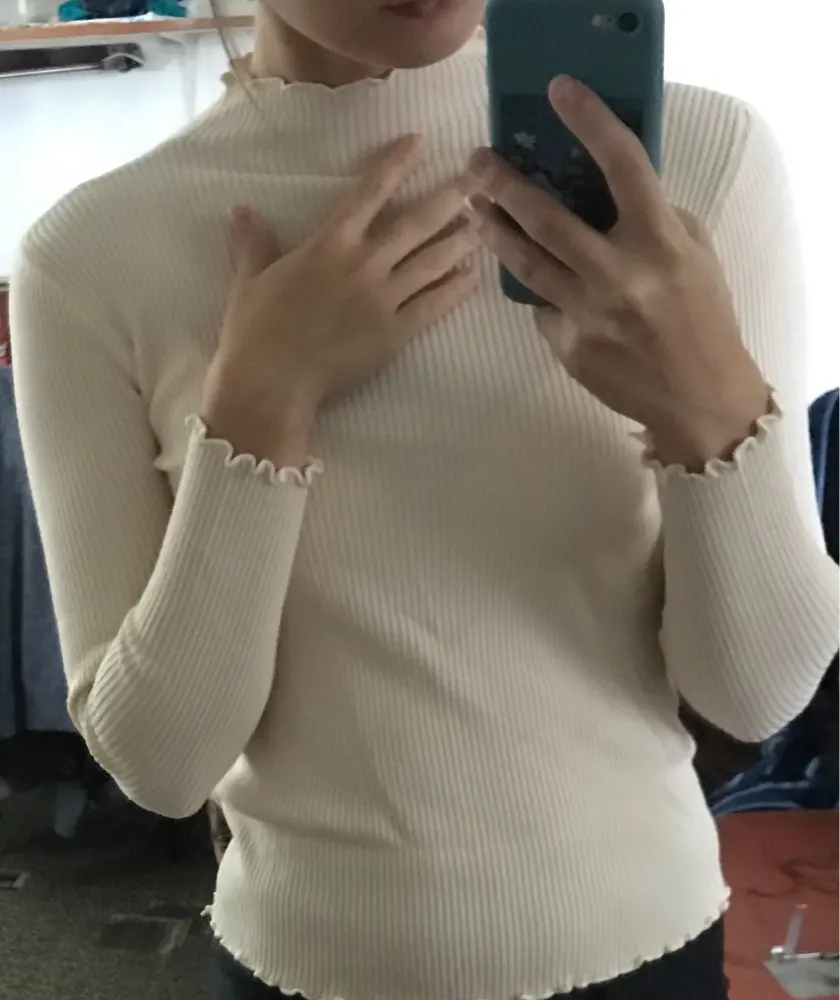 Водолазка с рюшами женский свитер высокоэластичный однотонный осенне-зимний модный свитер 2022 женские облегающие пикантные вязаные пуловеры розовый белый