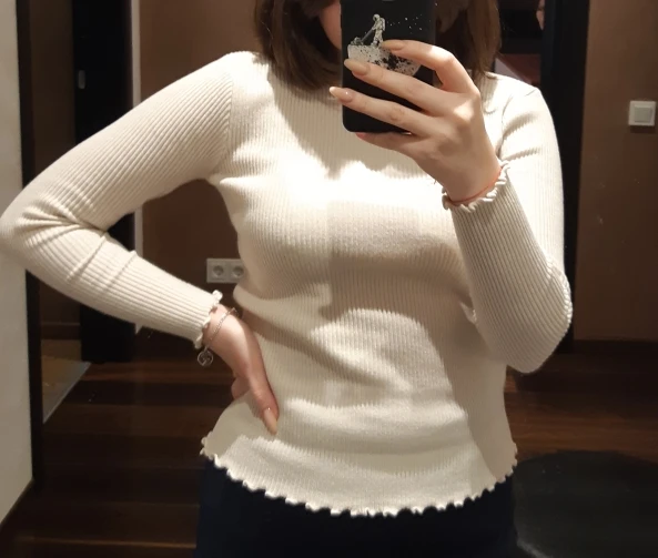 Неплохая кофта. Доставка очень быстрая. По размеру подойдёт на s-m. Мягкая, хорошо тянется. Но мне «повезло», на кофте пару затяжек, которые очень видно и они портят вид. Ну и в светлых оттенках будет сильно просвечивать.