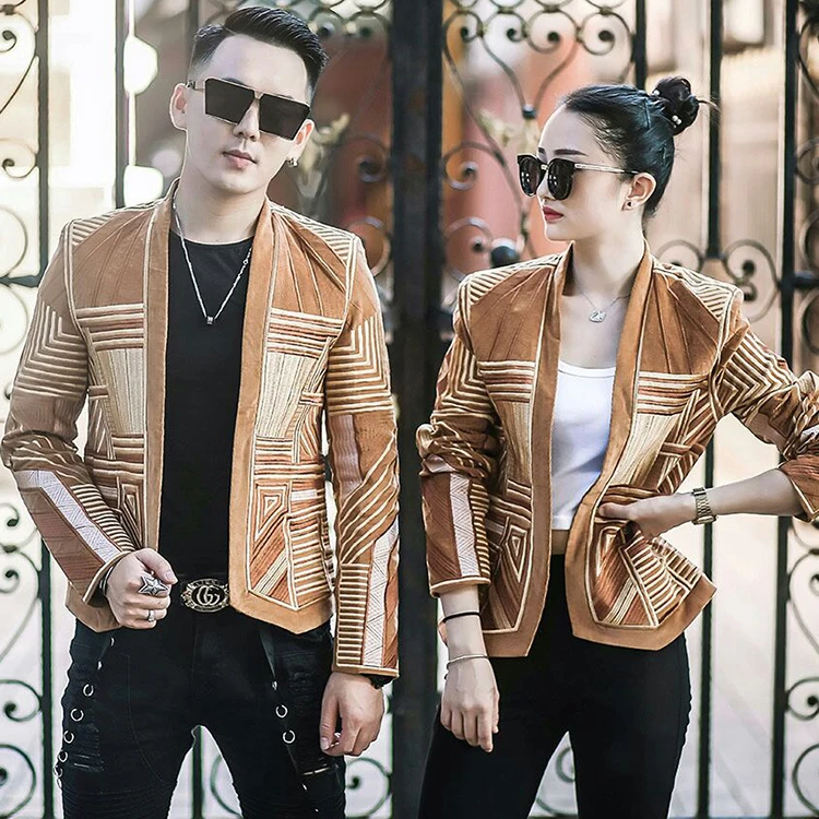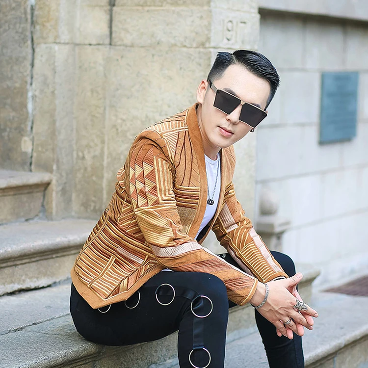 Высококачественный вельветовый Блейзер, мужской пиджак с вышивкой, Мужской приталенный дизайнерский пиджак, мужской пиджак для сцены вечерние, мужской пиджак