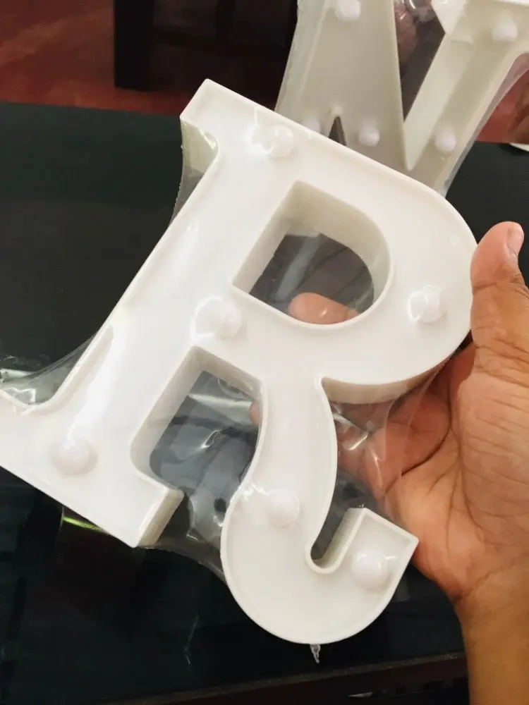 Буква понравилась. К качеству пластика конечно есть небольшие вопросы, небрежно запаяны стыки, швы, особенно на обороте. Но! Когда включаешь, можно все недочеты поставщику простить. Классная штучка для интерьера. Как ночник тоже отлично подойдёт. Свет не яркий , НЕ белый, а желтоватый , и не тепло -желтый , а как недозрелый лимон. У поставщика на фото светит в теплинку, фотошоп наше все). Не слепит глаза, свет мягкий, рассеянный.