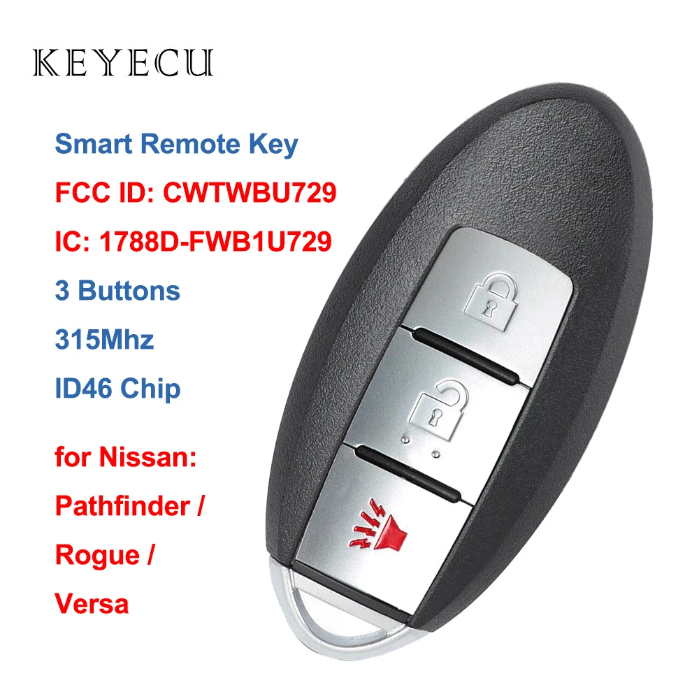 Запасной пульт дистанционного управления Keyecu 315 МГц ID46 для Nissan Pathfinder Rogue Versa 2007 008 2009 2010 2011 2012, FCC ID: CWTWBU729