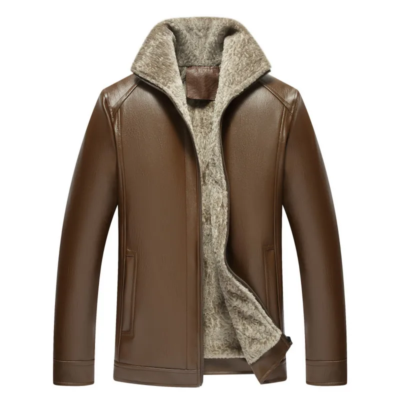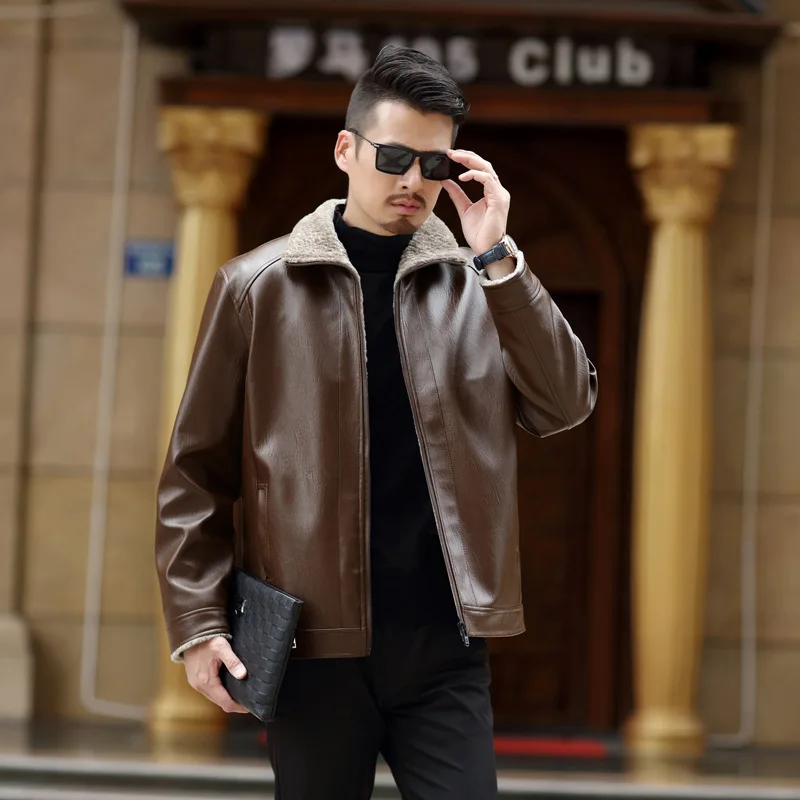 2021 осень и зима Новая меховая мужская одежда из искусственной кожи плюс бархат утолщенная Молодежная повседневная кожаная куртка мужская куртка