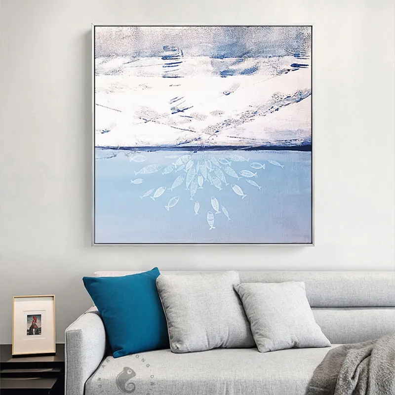 Абстрактный синий набор море n Картина на холсте с изображением рыб плакат и печать модный Декор Настенная картина для гостиной спальни столовой