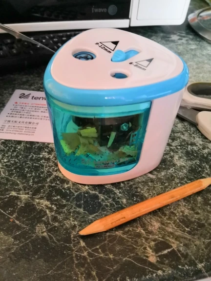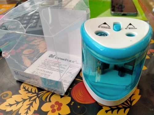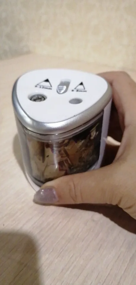 Доставка очень долгая!!!Заказывали на распродаже 11.11.2020,а приехала посылка 09.02.2021.Жесть,а не доставка. При том что отправили не каким то Seller's Shipping Method который везет месяцами и без отслеживания от слова совсем,а нормально доставкой Алиэкспресс(Aliexpress Standard Shipping).Посылка зависла где то на границе и долго не двигалась,продавец общительный уверял,что все в порядке,продлили срок защиты.Наконец она приехала. Переходим непосредственно к самой точилке.Главное это-вполне можно покупать,думалось при заказе,что работать будет посредственно,но нет,прекрасно работает,точит карандаши.Небольшого размера(на фото рядом с коробком спичек),работает от двух пальчиковых батареек(в комплект не входят).На основании противоскользящие "ножки-нахлобучки",но в процессе они не спасают,надо держать точилку другой рукой ибо она начинает вращаться по своей оси.Возможен вариант применения как обыкновенной точилки в ручном режиме,для этого на корпусе есть переключатель.