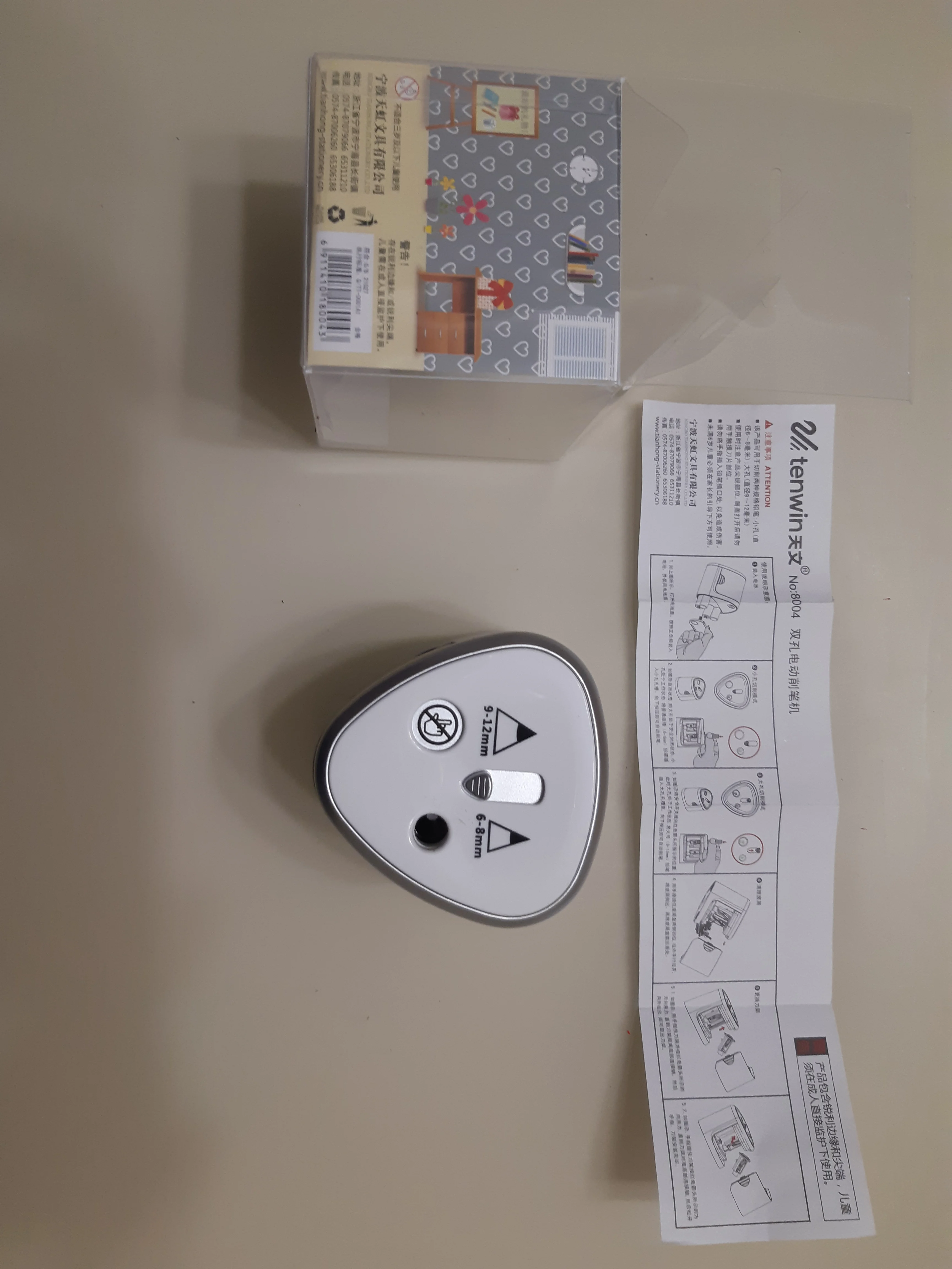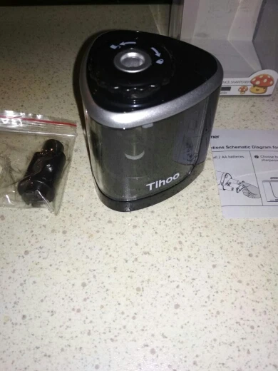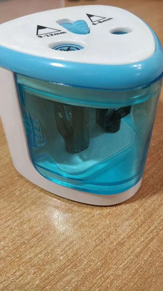 Точилка просто СУПЕР! Всё очень добротно сделано. Качество прастика на высоте. Работает хорошо. Пробывал на разных по качеству каркндашах, из плохой и хорошей древесины и даже пластиковые, всё затачивает на отлично! Для работы необходимы 4 барареи АА 1,5V. Есть инструкция по "эксплуатации" и замене режущих частей.(на китайском, при наших технологиях не проблема). Товар точно можно брать. Упаковано было очень просто. в один слой пупырки и скотч. Сама точилка в пластиковой коробочке.Невероятно но всё пришло целое! Вот доставка была ООООООчень долгая. Похоже кругосветное плаванье! Купил 11.11. в день распродажи, получил 15.02. Даже спор начал...думал не прийдет. В целом оценка ХОРОШО. Ребёнок в восторге! Спасибо продавцу!