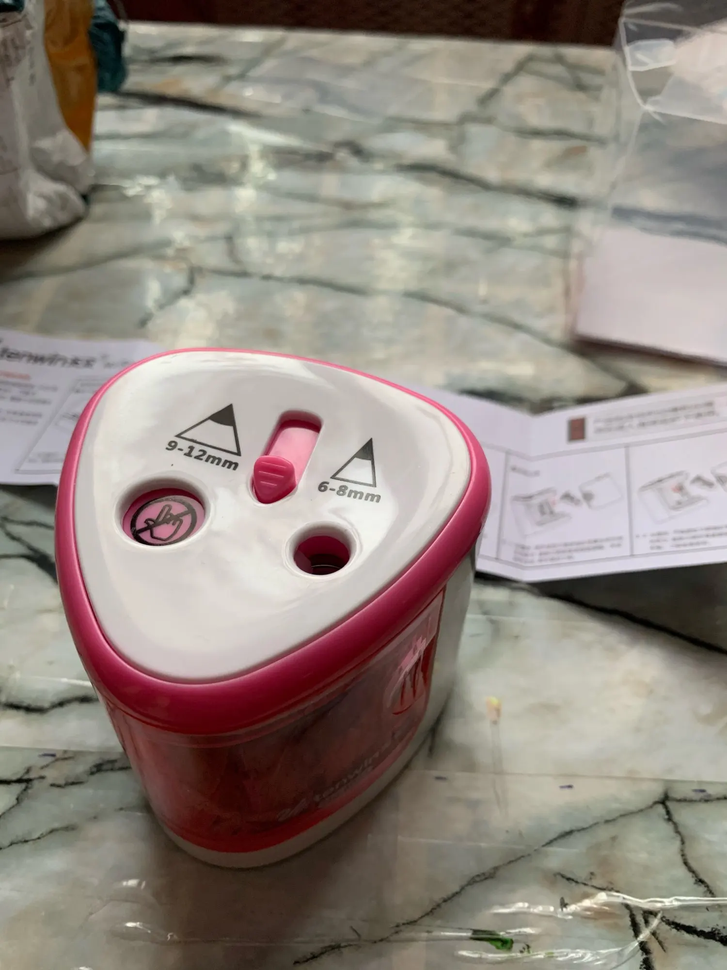 Продукт отлично выполняет свою функцию, как в обычных карандашах, так и в более толстых карандашах. Используйте 4 батарейки АА. Розовый цвет продукта намного светлее (жевательная резинка). Заказ был отложен на неделю по сравнению с установленным, он был очень хорошо защищен.