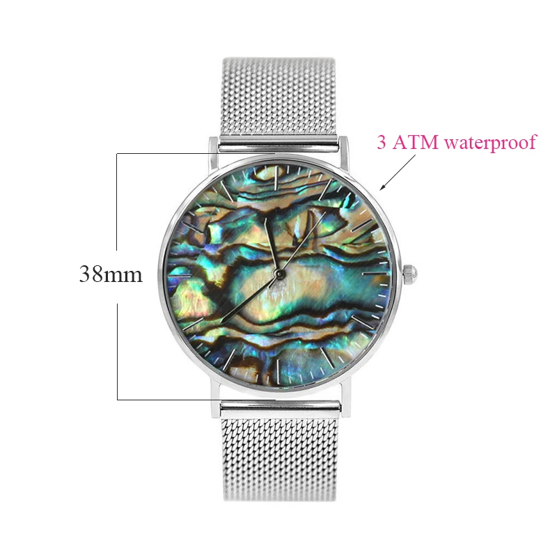 Mavis Hare Ocean Series, настоящие часы из ракушки абалона, женские наручные часы с сетчатым браслетом из нержавеющей стали, водонепроницаемость 3 АТМ
